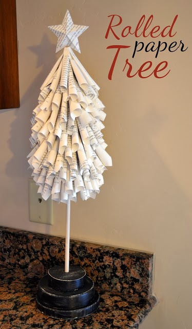 ...ή φτιάξτε κώνους από σελίδες βιβλίων που θα κολλήσετε πάνω σε ένα κώνο από χοντρό χαρτόνι κανσόν και δημιουργήστε αυτό το οικολογικό μίνι δεντράκι ακολουθώντας τις οδηγίες που θα βρείτε εδώ http://craftaphile.blogspot.com/2011/11/non-conventional-christmas-tree.html