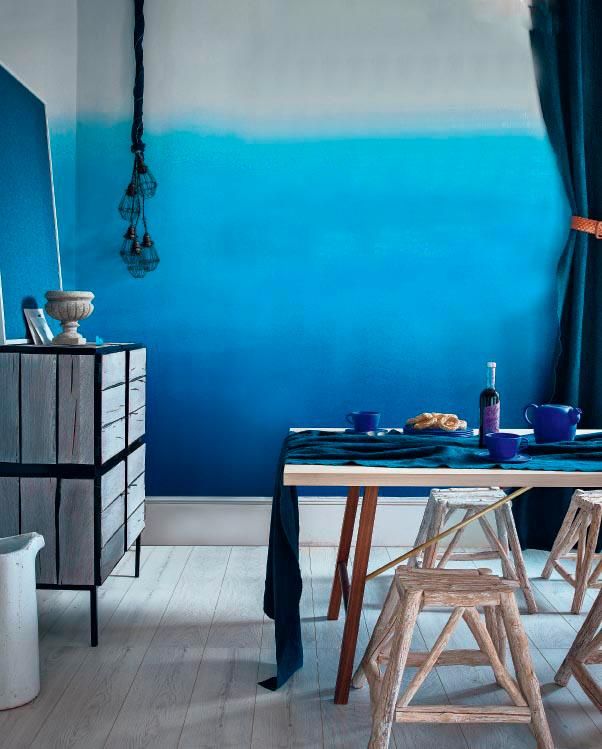 Αφού στεγνώσει το πρώτο χέρι μπογιάς, ξεκινήστε να βάφετε την βάση του τοίχου με την πιο σκούρα απόχρωση του χρώματος που έχετε επιλέξει...