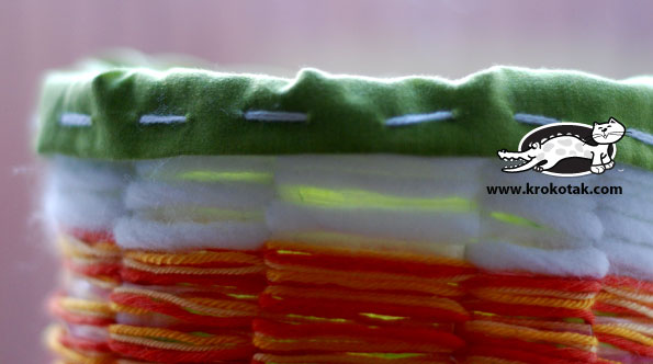 Μπορείτε να φανταστείτε ότι το παραπάνω χαριτωμένο πολύχρωμο καλαθάκι, που μπορείτε να χρησιμοποιήσετε εκτός από το να διακοσμήσετε ένα γλαστράκι, και για να αποθηκεύεται διάφορα αντικείμενα όπως μανό, κοκαλάκια, αξεσουάρ, ή σαν μια πρωτότυπη συσκευασία για δώρα ή μπισκότα-σοκολατάκια κτλ...