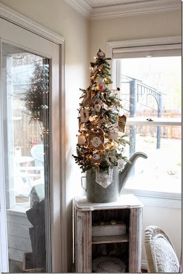 Στον κήπο ή στο εσωτερικό του σπιτιού μπορείτε να στολίσετε ένα μικρό δέντρο, φυσικό ή πλαστικό το οποίο θα το τοποθετήσετε μέσα σε ένα....ποτηστήρι! Το δεντράκι της φωτογραφίας είναι πλαστικό αλλά χάρις σε αυτήν την πρωτότυπη ιδέα δείχνει φυσικό! Τα υπέροχα στολίδια είναι μικρές καρτούλες από ανακυκλωμένο χαρτί (μπορείτε να τυπώσετε στον υπολογιστή ή να κόψετε σε μικρότερα κομμάτια αυτές που ήδη έχετε), μικρά υφασμάτινα τσαντάκια δώρων που ήδη έχετε (ή μπορείτε εύκολα να ράψετε από περισεύματα κομματιών υφάσματος), στα οποία έχετε κολήσει κοματάκια από δανδέλα.