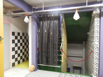(λίγο μαύρο γκοφρέ χαρτί ή κορδέλες ή ακόμα και σακούλες σκουπιδιών κομμένες σε λωρίδες δημιουργούν σκηνικό τρόμου)