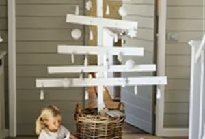 Χριστουγεννιάτικο δέντρο τοποθετημένο σε μια μικρή ξύλινη βάση, το οποίο αποτελεί μια παραλλαγή της ιδέας της προηγούμενης φωτογραφίας, μια και διαθέτει επίσης κύκλους στους οποίους τοποθετούνται οι μπάλες...